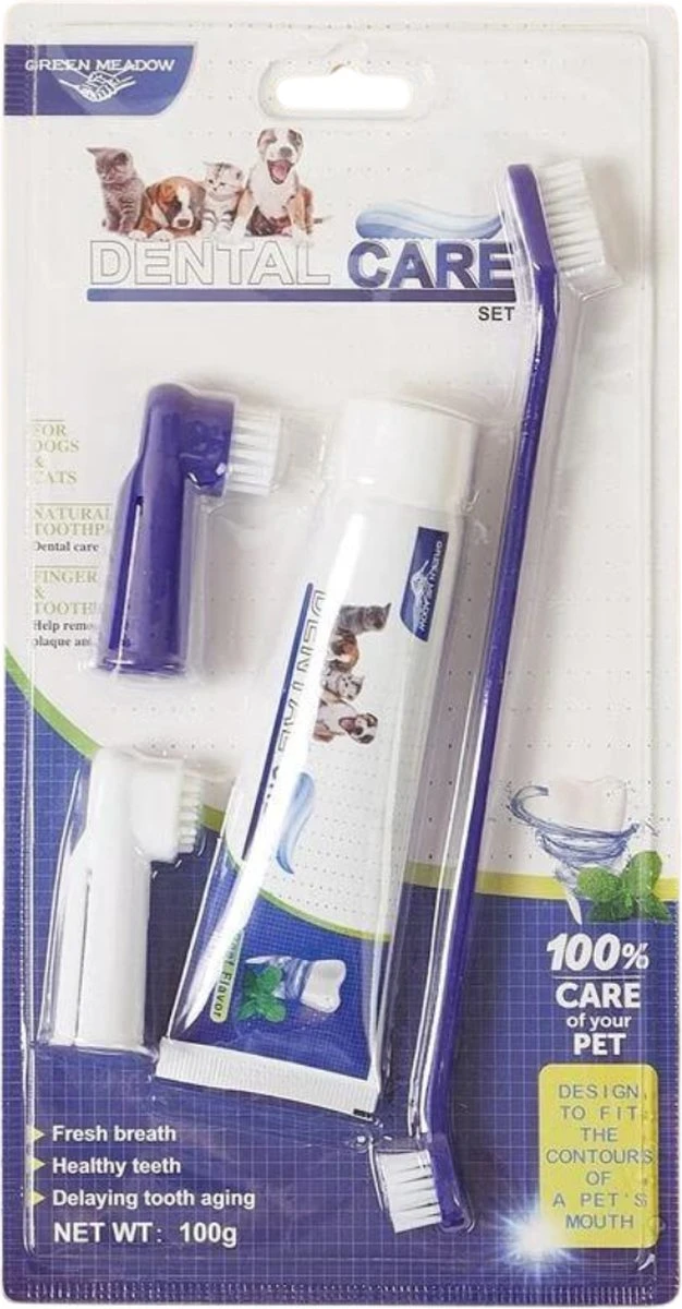 Hond En Kat Tandenborstel Verzorgingsset – Inclusief Tandpasta Met Beefsmaak – Vier Unieke Reinigingsborstels – Fluoride Vrij