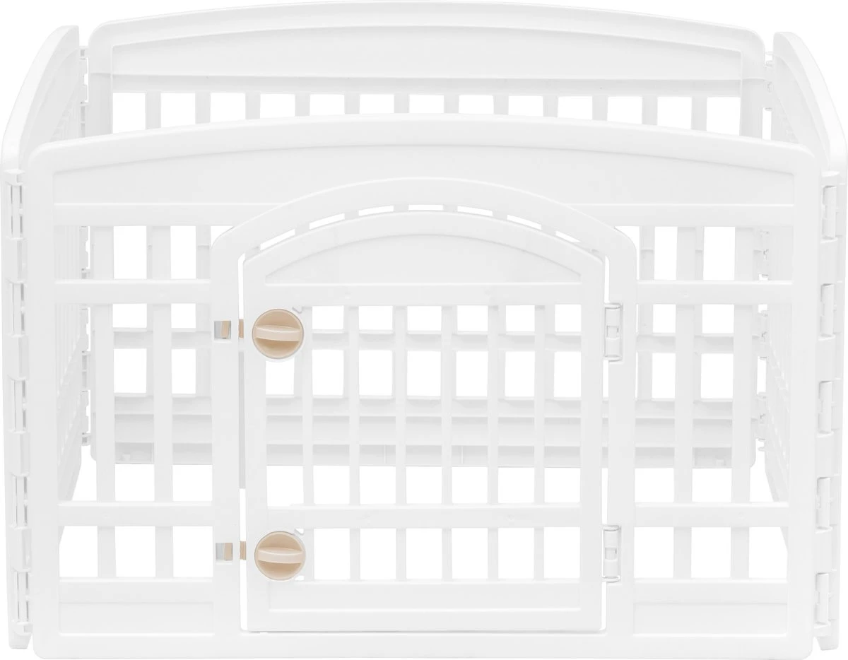 De Pet Circle is een praktische oplossing om een speel- en leerruimte te creëren voor uw hond. Door het lichte gewicht is de Pet Circle is eenvoudig in elkaar te zetten en te verplaatsen. Deze verplaatsbare afzetting is uitgerust met een deur met twee sloten en faciliteert genoeg ruimte om als slaapplek te dienen. De Pet Circle CI-604E is beschikbaar in de kleuren zwart en wit/beige.