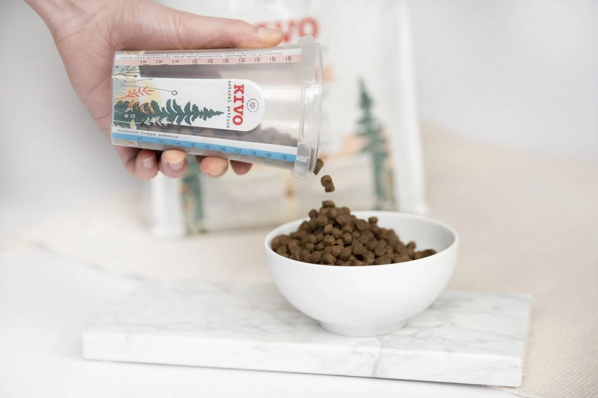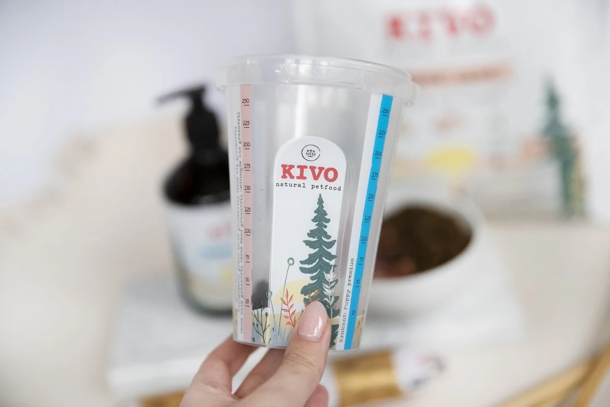 Kivo Petfood Maatbeker voor brokjes + proefzakje koudgeperste brokken Gedroogde Lam