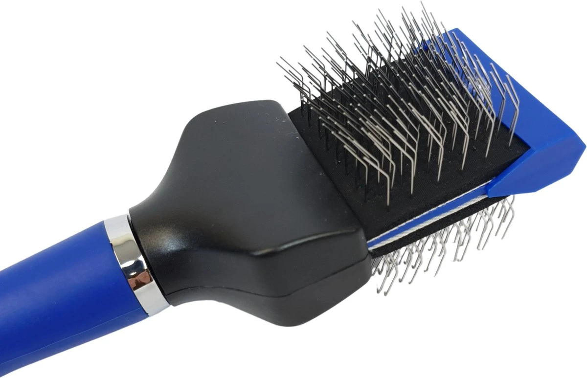 De borstelkop heeft aan allebei de kanten van de borstel pinnen. De borstel is erg duurzaam. De pinnen zijn gemaakt van edelstaal en afgerond zodat deze niet scherp zijn.
