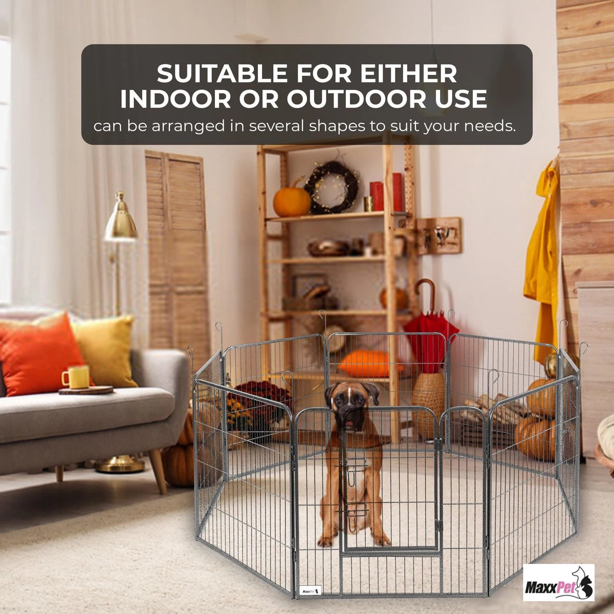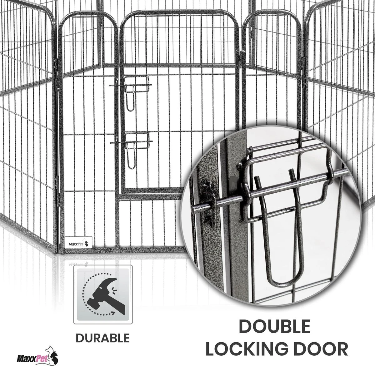 MaxxPet Puppyren – Hondenbench – Hondenren- Puppyren Met 8 Kennelpanelen – Staal -80 X 80 Cm Ø 210 Cm