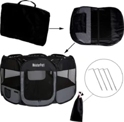 Meisterpet – Opvouwbare Puppyren Rond – (Ø X H) 115 X 58 Cm – Met Gratis Dieren Verzorging Set