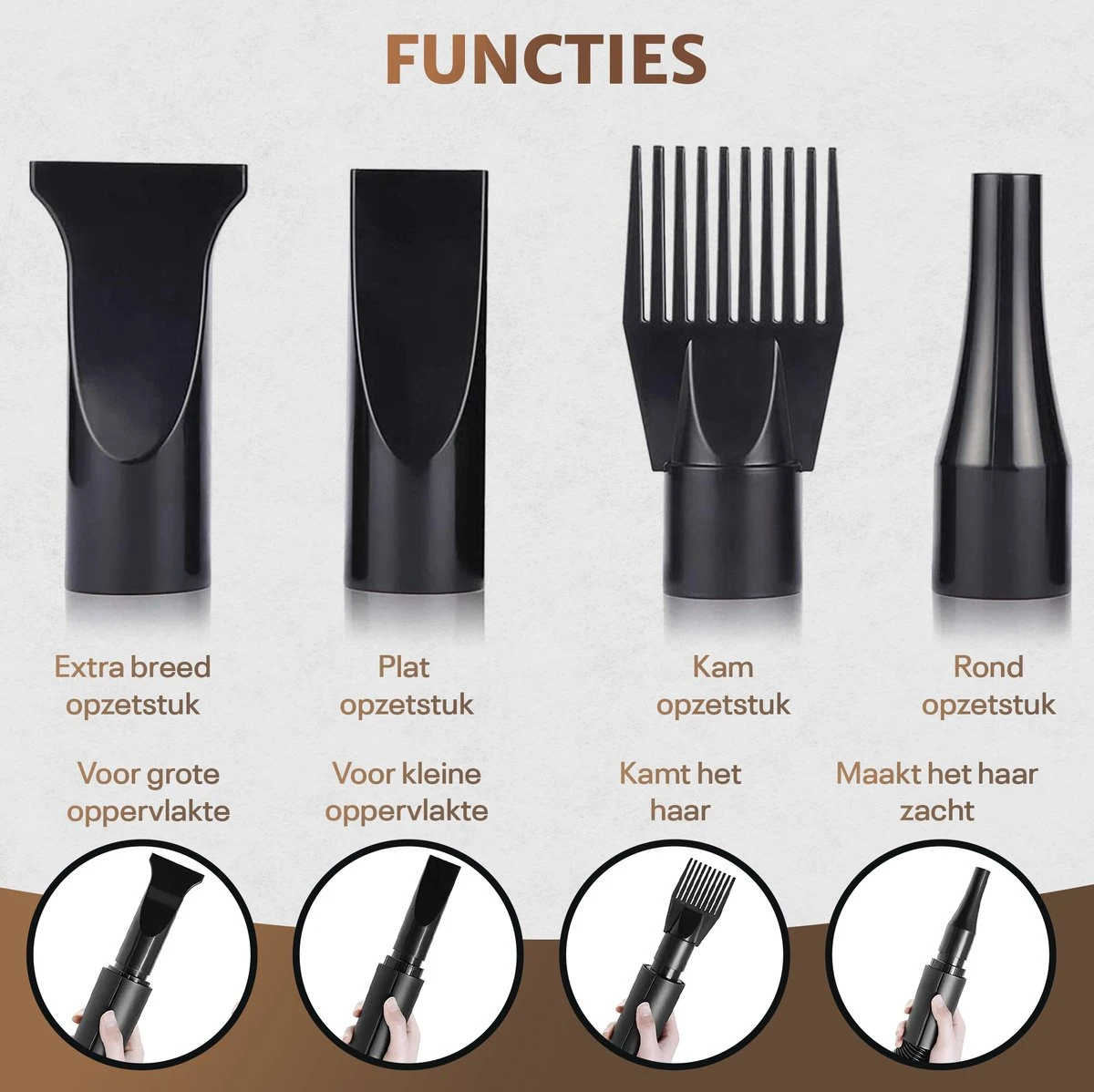 Een natte hond in huis hebben is niet plezierig: overal vieze pootafdrukken! Bovendien zijn honden, net als mensen, gevoeliger voor ziekte als ze langer nat blijven. Hem snel kunnen afdrogen is dus belangrijk. Bovendien bespaar je jezelf zo heel wat tijd die je anders kunt besteden aan lekker op de bank ploffen! De slang is prettig lang: wel 2 meter! Bovendien is deze gemaakt van een flexibele kunststof, zodat je gemakkelijk overal bij kunt, ook bij een hond die niet stil wilt zitten! Ook kun je de slang zo lekker strak oprollen. Sowieso neemt de waterblazer maar weinig ruimte in: hij is maar 20 bij 30 centimeter. Met de drie bijgeleverde opzetstukken kun je precies werken zoals jij dat wilt. Het spitse opzetstuk zorgt voor de krachtigste luchtstroom en is uitermate geschikt voor de dikkere vacht en precisiewerk. Met het platte opzetstuk kun je snel een groot oppervlakte droog maken. En is jouw hond nog nooit in aanraking gekomen met een waterblazer? Dan kun je je trouwe viervoeter eraan laten wennen door op de zachtste stand te beginnen en gebruik te maken van het ronde opzet stuk. Deze verdeelt de lucht meer en voelt daarom zachter aan. Daarnaast kun je ook de warmte van de luchtstroom instellen, zodat jouw hond zich altijd comfortabel voelt. Let wel op: de koude stand wordt beïnvloed door de kamertemperatuur. Bij een koudere kamertemperatuur is de lucht die de fohn uitblaast ook kouder. Tot slot heeft deze degelijke hondenblazer een CE certificering, bewijs van een oerdegelijke kwaliteit!